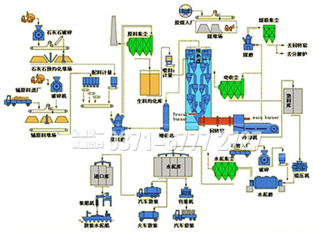 干法水泥回轉窯的主要工藝流程是以石灰石和粘土為主要原料,經破碎、配料、磨細制成生料,喂入水泥窯中煅燒成熟料,加入適量石膏(有時還摻加混合材料或外加劑)送入干法水泥回轉窯進行碾磨,在回轉窯內燃燒產生熱量,熱量通過氣體傳導或者輻射對物料進行加熱,同時隨著窯體按照設計的斜度和轉速不停轉動,原料也在窯內周期性的翻滾前進,從而把原料由進料端輸送到出料端。