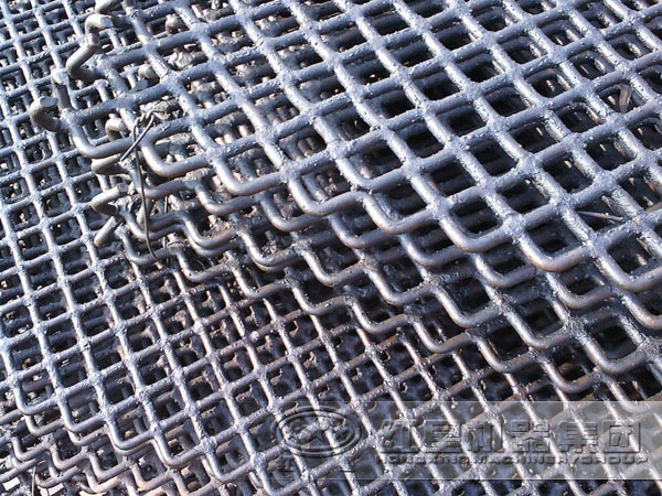 固定格篩的篩體用粗大的鋼材制成方形篩孔,篩孔的大小可根據(jù)具體情況自行確定。水平固定在粗碎礦倉的頂上。
